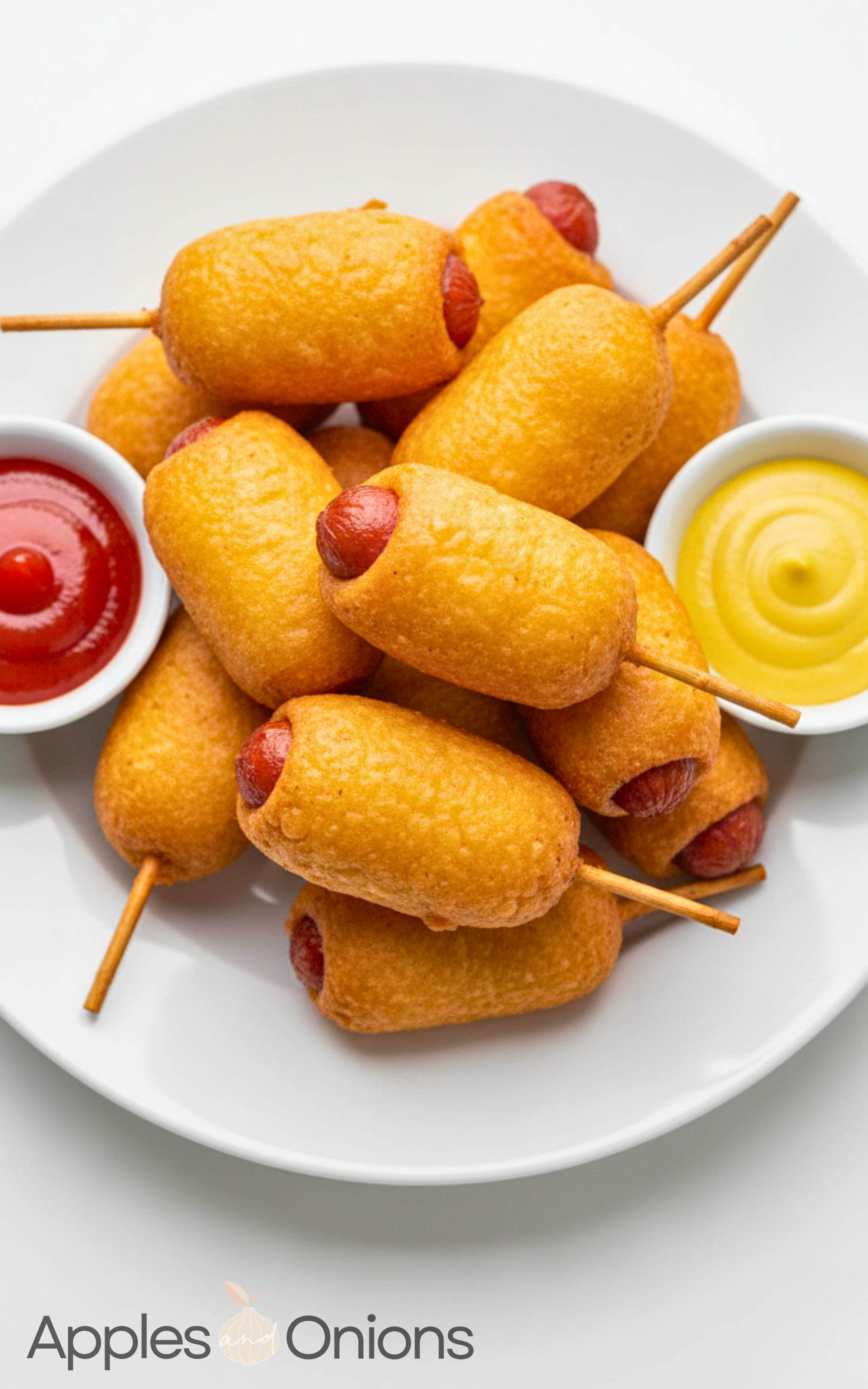 - Put your mini corndogs on a plate. Grab some ketchup, mustard, or honey mustard for dipping. Yummy and ready to eat!